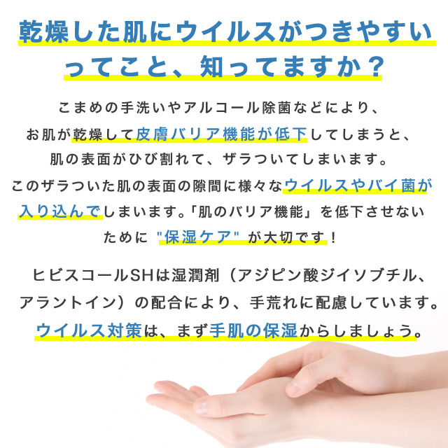 2種類の保湿剤を配合。手指をいたわりながらしっかり消毒。