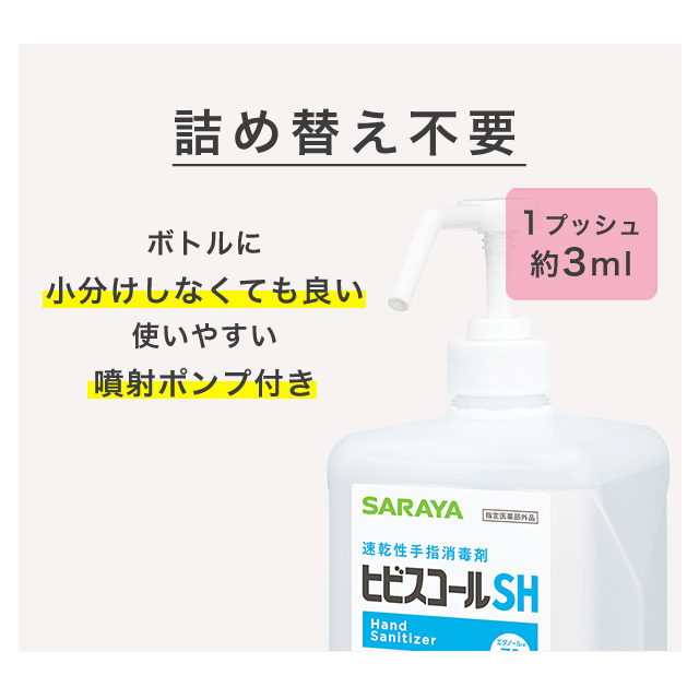 保湿剤入り手指消毒アルコール スプレー サラヤ ヒビスコールSH 噴射ポンプ付 1L×2個について